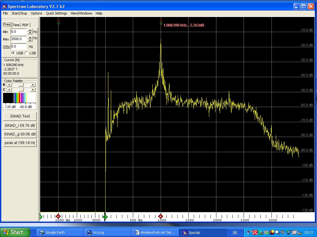 AF-Spectrum of 2m-Beacon DB0JT at 144,428MHz with ICOM IC-7000 on Ground plane Antenna