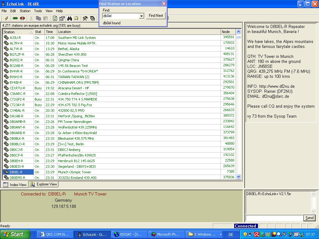 The program ECHOLINK is used to connect to other OM'S or relais stations via the internet.