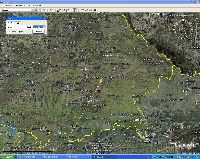 Google Earth with embedded Positions of 2m/70cm Relays. Helps finding Distance and Direction to Relay. (Overlay provided by DARC)